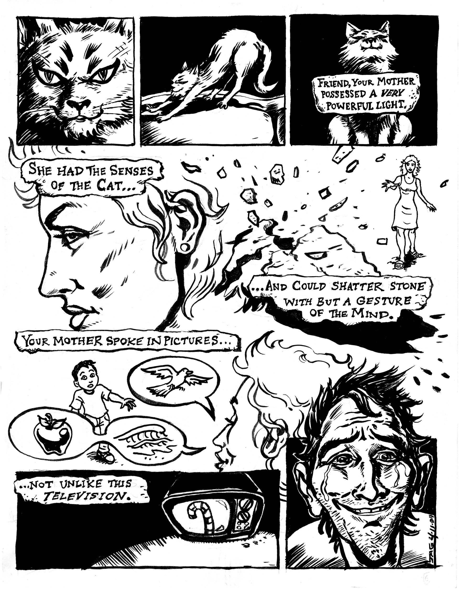 "The Companions" page 5 of 7. Pencils, inks, lettering; based on the sestina poem by John Ashton Golden.
